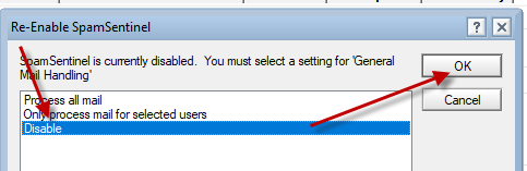 There is a mail routing problem for which a cause is not clear and SpamSentinel needs to be disabled during troubleshooting in order to determine if it was the source.